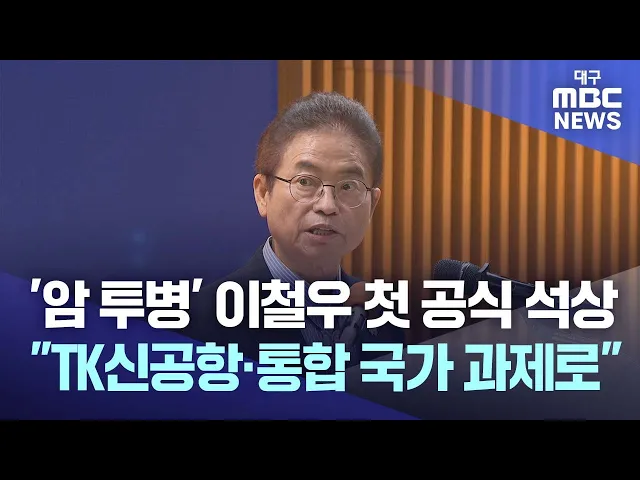 ◀앵커▶암 투병 중인 이철우 경북도지사가 한 달여 만에 공식 석상에 다시 섰습니다.민선 8기 3주년을 맞아 도정 성과와 향후 계획을 직접 설명하며, 신공항과 대구·경북 통합 같은 주요 현안은 국가적 과제로 풀어야 한다고 강조했습니다.엄지원 기자가 보도합니다.◀기자▶이철우 경북도지사가 혈액암 진단 사실을 공개한 ...
