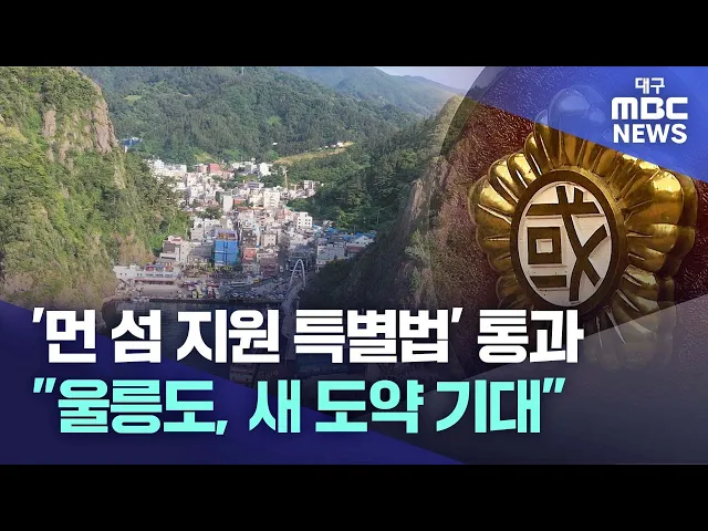 ◀앵커▶울릉군의 오랜 숙원이었던 '국토 외곽 먼 섬 지원 특별법'이 최근 국회 본회의를 통과했습니다. 인구가 9천 명대로 줄어 소멸 위기에 놓인 울릉군에 새로운 발전의 계기가 될지 기대가 큽니다. 김형일 기자가 보도합니다. ◀기자▶울진 죽변에서 130km, 포항에서 217km 떨어진 울릉도. 열악한 정주 여건과 교육 환경, ...