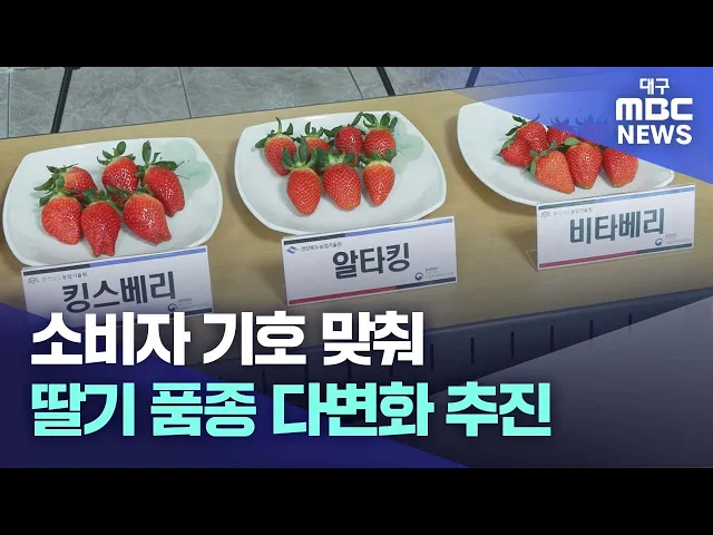◀앵커▶딸기는 품종 국산화를 이뤄낸 대표적인 작물인데요, '설향' 한 품종이 거의 대부분을 차지하고 있습니다.소비자의 다양한 기호에 맞추고 딸기 산업의 경쟁력을 높이기 위해 품종 다변화가 본격 추진됩니다.김건엽 기자가 보도합니다.◀기자▶대형 딸기 '킹스베리' 수확이 한창입니다. 보통 딸기의 2배 크기에 당도도 10...