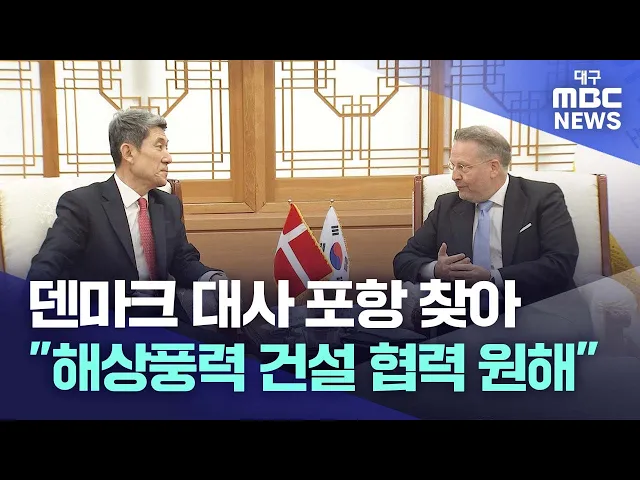 ◀앵커▶해상 풍력의 나라로 알려진 덴마크 대사가 지난주 포항을 찾아 신재생에너지 및 그린수소 분야 상호 협력 방안을 논의했습니다.덴마크 대사는 “기후 대응이 곧 산업 경쟁력을 갖추는 열쇠”라며 해상 풍력 단지 건설에 있어 최적의 입지 조건을 갖춘 포항과 협력해 녹색 성장을 견인하고 싶다고 밝혔습니다. 이규설 기...