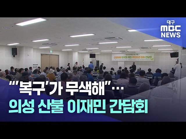 ◀앵커▶지난 3월 대형 산불이 경북 지역에 유례없는 피해를 입힌 지 100일이 더 지났습니다.이만큼 시간이 흘렀지만 제대로 보상조차 받지 못하는 사각지대가 속속 드러나면서 이재민들의 상처는 더 곪고 있는데요.6월 30일 경북 의성에서는 해결책을 강구하고자 국회 산불특위 임미애 국회의원을 초청한 주민 간담회가 열렸...