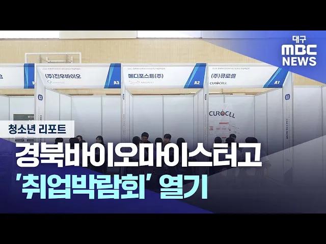 ◀앵커▶영천 경북바이오마이스터고는 첨단 산업인 바이오 분야 인재를 키우고 있는데요.특히 제약·바이오 분야 기업 박람회를 진행해 학생들에게 취업 컨설팅과 업계 동향을 제공하고 있습니다.이현서 MBC 청소년 기자가 박람회 현장을 소개합니다.◀기자▶진로와 취업을 향한 열기가 가득한 이곳은 2025학년도 취업박람회가 ...