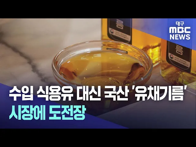 ◀앵커▶국내에서 사용되는 식용유는 수입산이 거의 대부분을 차지하고 있는데요그동안 경관용으로 주로 활용되던 유채가 수입 식용유를 대체하는 대안으로 떠오르고 있습니다.김건엽 기자가 보도합니다.◀기자▶까만 유채 씨앗을 압착기에 넣자 노란 기름이 흘러나옵니다.화학적 추출 방법을 쓰는 수입 카놀라유와 달리 국산 ...