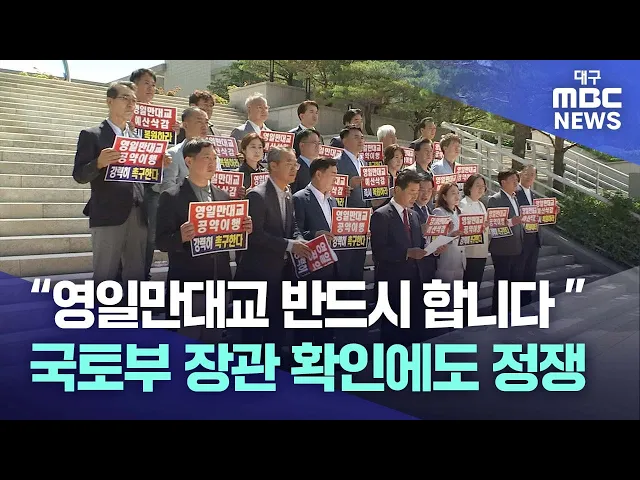 ◀앵커▶영일만대교 건설 사업비가 전액 삭감된 것을 두고 국회에서뿐만 아니라 지역 정치권에서도 공방이 뜨겁습니다.장관은 반드시 추진한다는 입장을 밝혔지만 국민의힘은 TK 홀대론을 들고나왔고, 민주당은 윤석열 정부에서 시작한 사업계획 적정성 재검토 때문이지 무산은 아니라며 반박했습니다.김기영 기자가 보도합니...