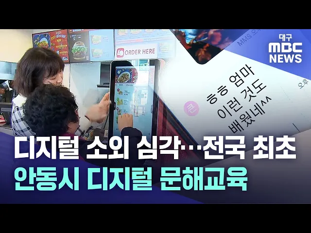 ◀앵커▶요즘은 식당에 가서 음식 주문하는 것도, 은행 입·출금이나 버스, 기차표 끊는 것도 휴대전화나 디지털 기기를 다룰 줄 모르면 일상생활 하기가 쉽지 않습니다.그런데 65살 이상 인구 경북의 경우 전체의 20%가 넘는데요, 이 인구의 대부분은 이런 디지털 기기를 다룰 줄 모르는 디지털 비문해자입니다.안동시가 전국...