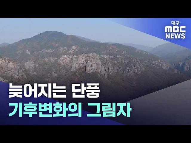◀앵커▶깊어져 가는 가을을 제대로 느끼는 데에는 단풍놀이만 한 게 없죠.그런데 단풍이 점점 늦어지고 있는 사실, 알고 계시나요?지구 온난화로 인한 이상 기후의 그림자가 여기까지 드리워진 건데, 이 속도대로라면 수십 년 뒤엔 10월 단풍이 실종될 수도 있다고 합니다.엄지원 기자가 보도합니다.◀기자▶"어른들의 가을 소...
