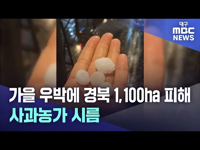 ◀앵커▶지난주 경북 북부지역에 거센 가을 우박이 쏟아졌습니다.우박 피해를 입은 농지는 1천 헥타르가 넘는 걸로 추정되는데요.올봄 냉해와 수해로 쑥대밭이 된 밭에 우박까지 내리면서 농민들의 시름이 깊어지고 있습니다.김서현 기자가 보도합니다.◀기자▶경북 영주 시내에 비와 섞인 우박이 요란하게 쏟아져 내립니다.크...