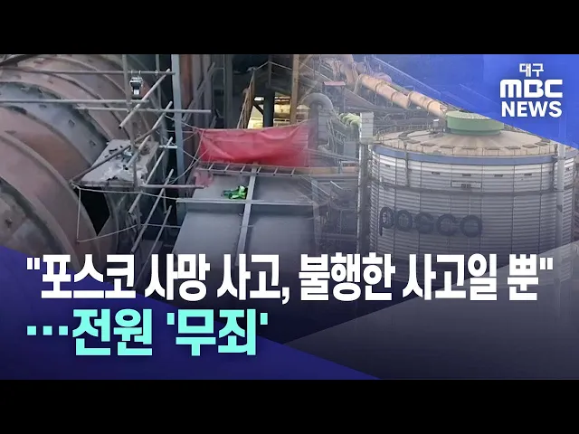 ◀앵커▶지난 2020년, 포스코 포항제철소에서 60대 하청노동자가 작업 중 집진기 배관에 빨려 들어가 추락해 숨진 사고에 대한 1심 판결이 나왔습니다.무려 3년여 만입니다.재판부는 이번 사고는 불행한 사고에 해당할 뿐이라며 피고인 하청업체 관계자와 포스코홀딩스 관계자 전원에게 무죄를 선고했습니다.박성아 기자가 보...