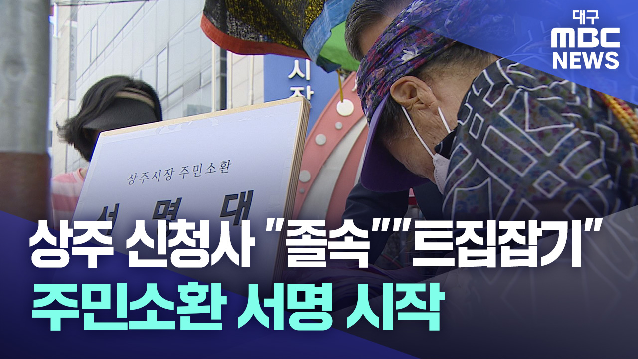 ◀앵커▶경북 상주시 신청사 건립에 반대하는 시민단체가 강영석 상주시장에 대한 주민소환 절차를 시작했습니다.만약 상주시민 1만 2천여 명이 주민소환에 찬성한다고 서명하면, 강 시장에 대한 주민소환 투표로도 이어질 수 있는데요.강영석 시장은 즉각 기자회견을 열고, 정치적 반대 세력의 '반대를 위한 반대'라며 강한 ...