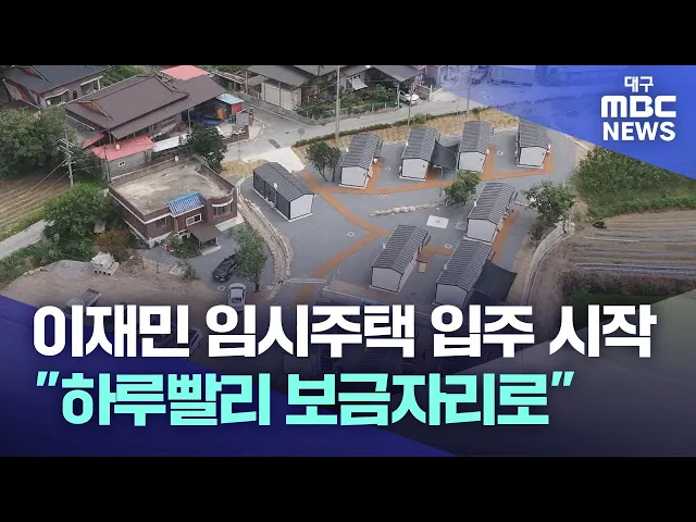 ◀앵커▶7월 집중호우로 산사태 피해가 컸던 예천군 벌방리 주민들이 주말부터 임시 주택으로 입주를 시작했습니다.주민들은 거처가 생겨 한시름 놓긴 했지만, 하루빨리 안정적인 새 보금자리를 마련하고 싶다는 마음이 간절합니다.다른 지역의 임시주택도 다음 주 안으로 완공될 예정입니다.◀기자▶마을 공터에 조성된 임시 ...