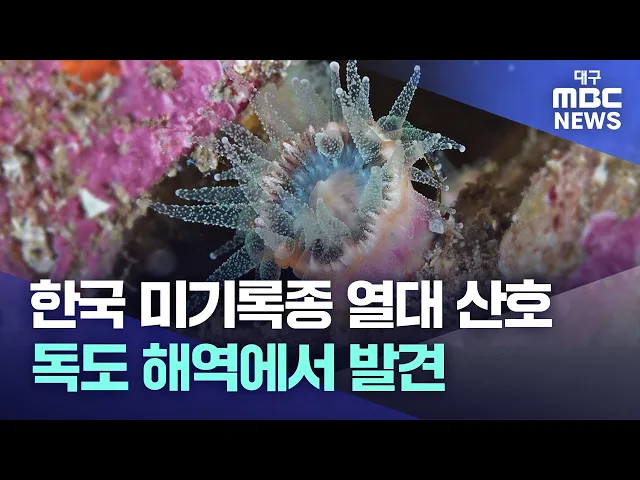 ◀앵커▶한국해양과학기술원이 독도 해역에서 지금까지 우리나라에서는 기록되지 않은 '정향 돌산호'과의 열대 산호를 발견했습니다.이 돌산호는 필리핀이 주 서식지인데 위도상 훨씬 북쪽인 독도 해역에서 발견됐다는 것은 우리 해양 생태계가 열대, 아열대 영향을 받고 있다는 것을 의미합니다.독도 해역에서는 지난 2~3년...