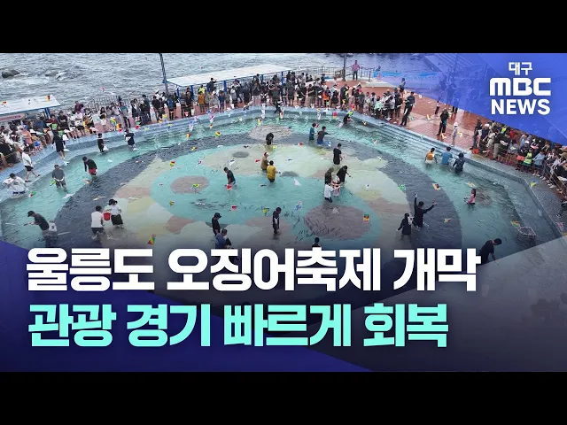 ◀앵커▶울릉도에 2023년 들어 24만여 명의 관광객이 찾으면서 코로나 이전 수준의 관광 경기를 되찾고 있습니다.울릉도 대표 축제인 오징어 축제도 열리면서 피서철 관광객 유치에 한몫하고 있습니다. 김형일 기자가 보도합니다. ◀기자▶징 소리와 함께 수십 명의 관광객들이 한꺼번에 수조 안으로 뛰어들고 어린 아이부터 어...