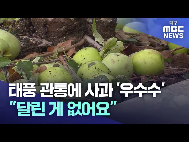 태풍 관통에 사과 '우수수'···"달린 게 없어요"