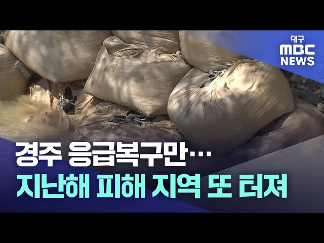 ◀앵커▶태풍 '카눈'으로 경북 동해안에서는 다행히 인명 피해는 없었지만, 많은 비로 일부 지역 주민들은 뜬눈으로 밤을 지새웠습니다.특히 경주에서는 2022년 힌남노로 토사에 휩쓸린 지역이 또다시 피해가 났는데요. 예산 집행이 늦어지는 바람에 제대로 된 복구가 미뤄졌기 때문입니다. 장미쁨 기자가 보도합니다. ◀기자▶...