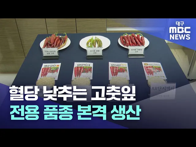 ◀앵커▶혈당을 떨어트려 당뇨 예방과 치료에 도움을 주는 고춧잎 전용 품종이 개발됐는데요.스마트팜에서 본격적인 생산이 이뤄지면서 기능성 식품개발도 기대되고 있습니다.김건엽 기자가 보도합니다.◀기자▶스마트팜에서 잎 전용 고추인 '살리초'를 재배하고 있습니다.고추 열매 대신 잎을 활용하기 위해 만든 국산 신품종...