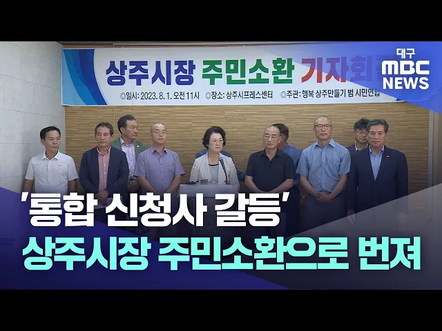 ◀앵커▶경북 상주시 통합 신청사 이전에 반대해 온 행복 상주 만들기 범시민 연합이 강영석 상주시장에 대한 주민 소환에 들어가겠다고 밝혔습니다.시민을 무시하고 직권을 남용하고 있다고 지적했는데, 소환 절차 시작까지 남은 약 보름 동안 시의회 중재와 양측간 물밑 대화로 사태가 풀릴지 관심이 쏠리고 있습니다 김건...
