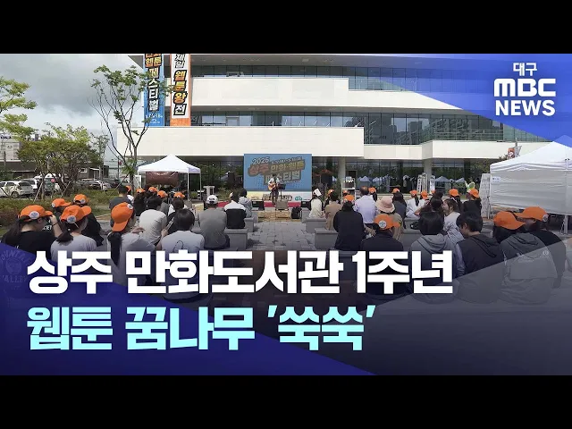 ◀앵커▶요즘 흥행하는 드라마나 영화 중에는 웹툰이나 만화를 원작으로 한 작품들이 많죠.이런 흐름에 힘입어 2024년 상주에 도내 첫 만화 특화 도서관이 문을 열었는데, 웹툰 관련 행사도 다양하게 이어지며 지역 웹툰 작가 지망생들의 보금자리 역할을 톡톡히 하고 있습니다.홍석준 기자입니다.◀기자▶5월 경북 상주시립 도...