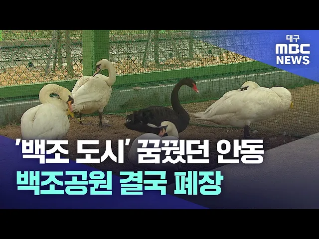 ◀앵커▶'백조 도시 안동'을 꿈꾸며 야심 차게 조성했던 안동 백조공원이 개장 9년 만에 폐장했습니다.안 그래도 골칫덩이였던 백조공원에, 지난겨울 고병원성 조류 인플루엔자가 덮치면서 양계농가를 위협하는 시설이 됐기 때문인데요,안동시는 백조공원과 낙동강 변 백조 방사장 두 곳을 모두 철거하고, 시민 휴식공원으로 ...