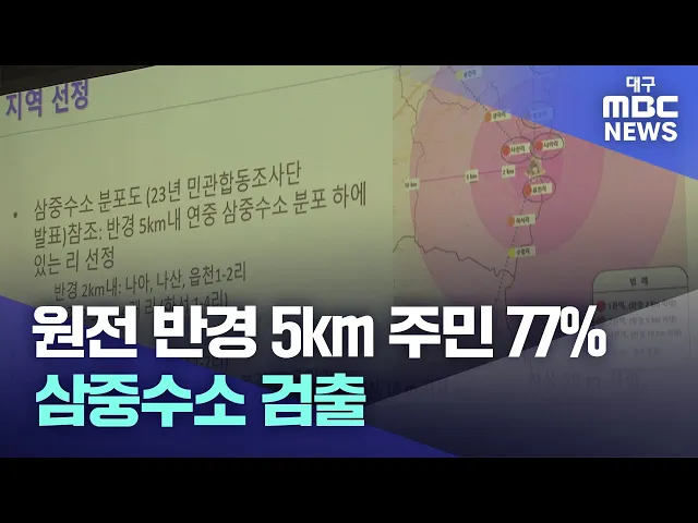 ◀앵커▶월성원전 인근 주민들의 건강 영향을 조사한 환경부 실태조사 결과 보고서가 공개됐습니다.조사 결과 원전 반경 5km 내 주민 77%에서 삼중수소가 검출됐고, 원전으로부터의 거리와 거주 기간이 피폭량과 밀접한 상관성을 보인다는 사실이 확인됐습니다.장미쁨 기자가 보도합니다.◀기자▶환경부가 월성원전 인근 주민...