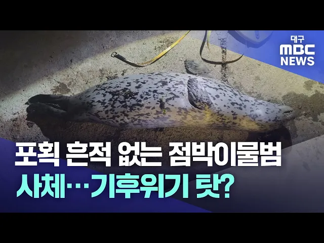 ◀앵커▶경북 포항과 제주 앞바다에서 포획 흔적이 없는 점박이물범 사체가 잇따라 발견되고 있습니다.무분별한 플라스틱 사용과 기후 위기로 인한 급격한 해양 생태계 변화가 물범이 죽은 원인으로 추정되고 있습니다.배현정 기자가 보도합니다.◀기자▶5월 24일, 포항 앞바다에 점박이물범이 죽은 채 발견됐습니다.길이 120cm...