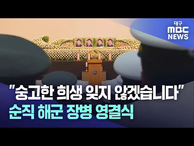 ◀앵커▶훈련 중 군용기가 추락해 순직한 해군 장병들의 영결식이 오늘 해군장으로 엄수됐습니다.마지막 순간까지 충실하게 임무에 임했던 이들의 희생을 기리며 유족과 동료 장병들은 눈물로 마지막 길을 배웅했습니다.박성아 기자가 보도합니다.◀기자▶영정사진 속 환하게 웃고 있는 네 명의 해군 장병.조종사 고 박진우 중...