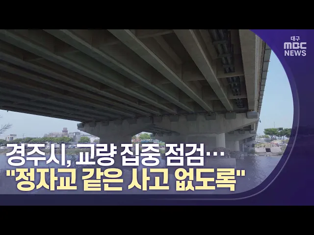 ◀앵커▶경북 경주시가 성남 정자교 붕괴와 같은 안전사고를 예방하기 위해 지정 교량 129곳에 대해 집중 점검에 들어갔습니다.집중 점검에서 위험 요인이 확인되면 긴급 예산을 편성해, 전면 보수나 개체 공사에 들어가기로 했습니다.임재국 기자가 보도합니다.◀기자▶경주 터미널에서 충효동을 잇는 서천교, 1989년 조성됐고...