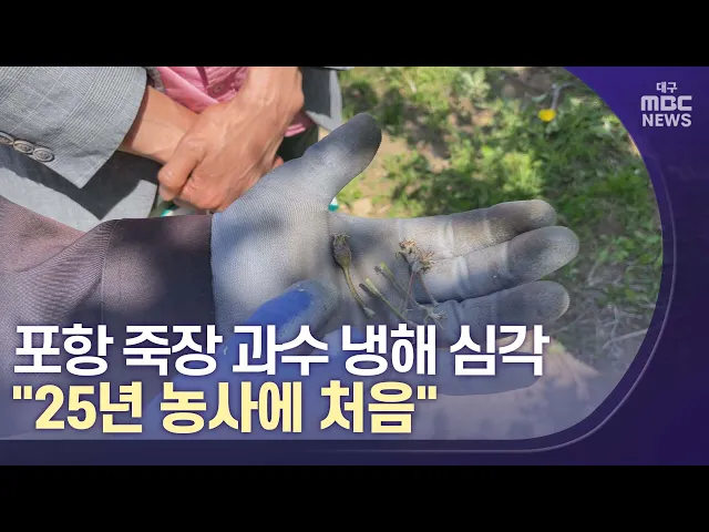 ◀앵커▶2023년 봄 전국적으로 이상기온으로 인한 농작물 피해가 잇따르고 있는데요, 포항의 대표적인 과수 재배 단지인 죽장 지역도 냉해 피해가 심각합니다.수확량을 기준으로 사과는 50% 이상, 자두와 복숭아는 80%~90%까지 피해를 봤다는 이야기가 나오고 있습니다.장성훈 기자입니다. ◀기자▶지대가 높아서 하늘 아래 첫 ...