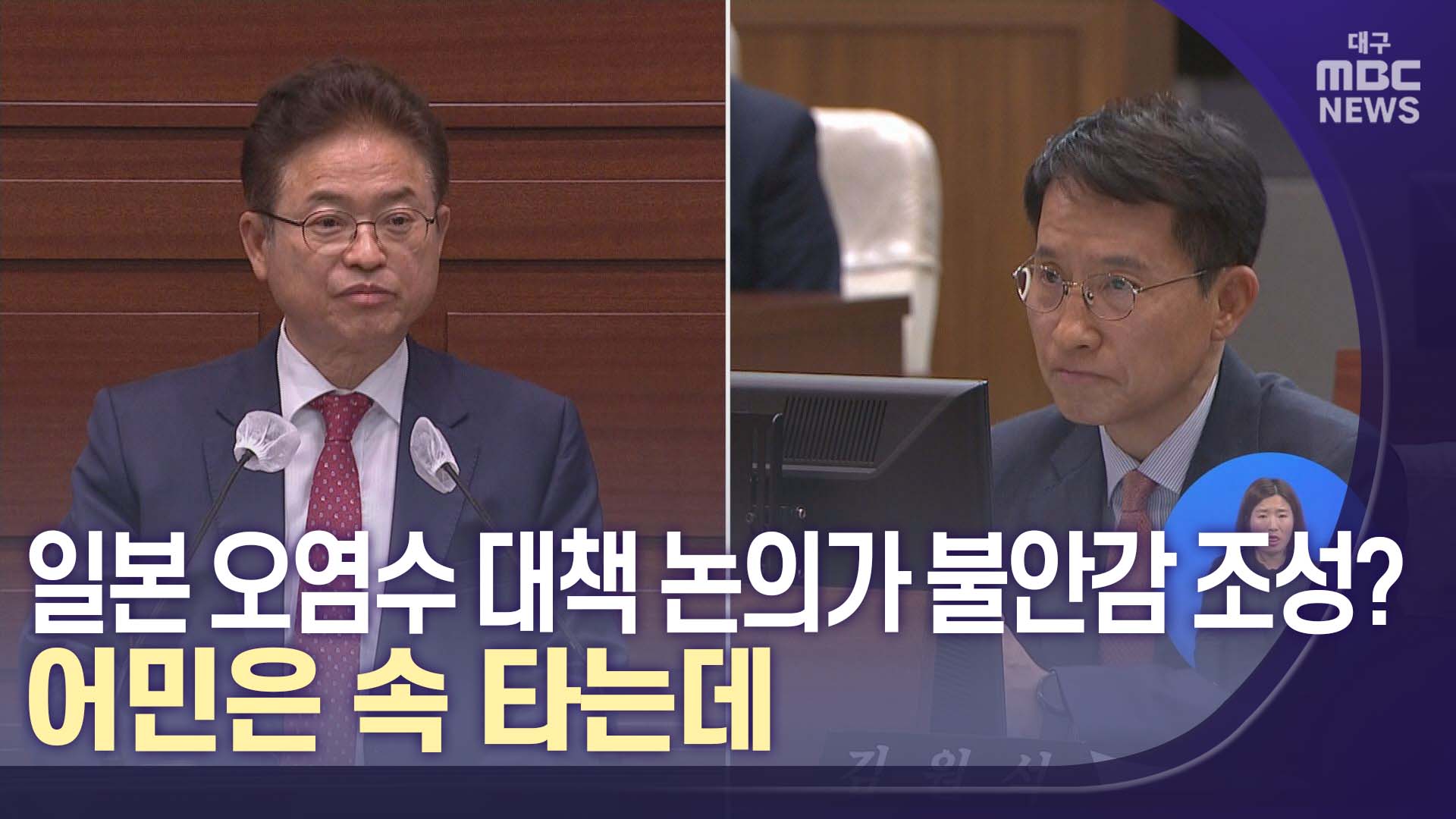 ◀앵커▶이철우 경북지사가 최근 도정질문에서 후쿠시마 원전 오염수 배출에 대한 견해를 밝혔는데요. 이르면 7월 이후 방류한다는 일본 언론 보도가 나왔는데도, 아직 시간이 많다며 검증을 더 해봐야 한다, 대책 논의 자체가 불안감을 조성할 수 있다는 식으로 답변했습니다.어민들은 바짝바짝 속이 타는데 지사의 책무를 ...