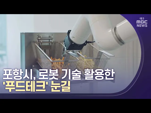 ◀앵커▶로봇이 음식 서빙은 물론 요리까지 영역을 넓히고 있는데요, 음식을 뜻하는 '푸드'와 기술을 뜻하는 '테크놀로지'를 결합한 '푸드테크'가 빠른 속도로 발전하고 있습니다.포항이 '푸드테크' 산업을 선도하겠다며 도전장을 내밀었습니다.보도에 이규설 기잡니다◀기자▶치킨을 튀기고, 기름을 빼내고 튀김 부스러기를 ...