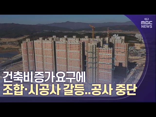 ◀앵커▶최근 물가 상승으로 건축비가 크게 오르면서 아파트 건설 현장 곳곳에서 문제가 발생하고 있습니다.특히 조합 아파트의 경우 공사비 인상을 요구하는 시공사와 이를 받아들일 수 없다는 조합원 사이의 갈등으로 공사가 중단되는 경우도 있는데요.정부와 지자체의 개입이 필요하다는 지적이 나옵니다.박성아 기자가 보...