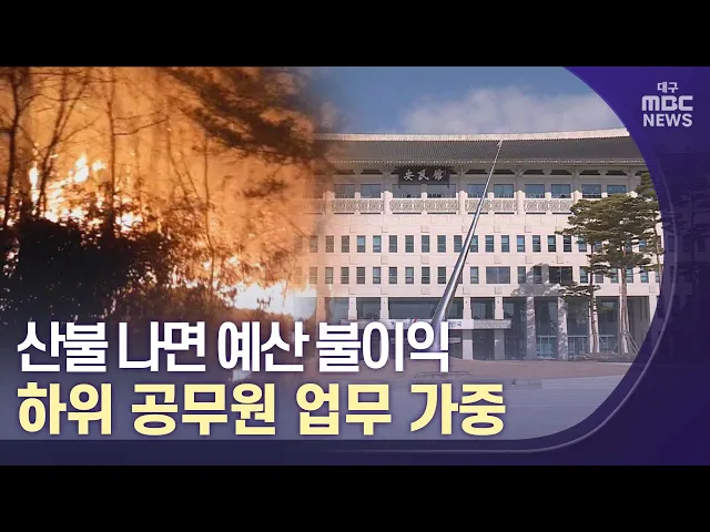 ◀앵커▶올들어 산불이 자주 발생하면서 경상북도가 극약 처방을 내놓았습니다.산불이 많이 발생하는 시군은 예산에 불이익을 주겠다는 건데요.취지는 충분히 공감하지만 지금도 눈코 뜰 새 없는 시군 직원들에게 산불 업무와 책임을 가중시킨다는 지적도 나오고 있습니다.장성훈 기자입니다.◀기자▶2022년 대형 산불의 상처가...