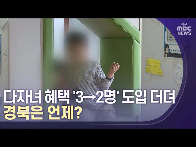 ◀앵커▶경상북도는 3명 이상 다자녀 가정에 다자녀 할인 카드나 각종 시설 이용료 감면 같은 혜택을 제공하고 있습니다. 하지만 출산율이 크게 줄면서 지자체마다 다자녀 기준을 3명에서 2명으로 완화하는 추세인데요. 경북도 최근 교육비 지원 기준을 확대하는 조례가 통과됐고, 다자녀 지원 대상 전반을 두 자녀로 확대하...