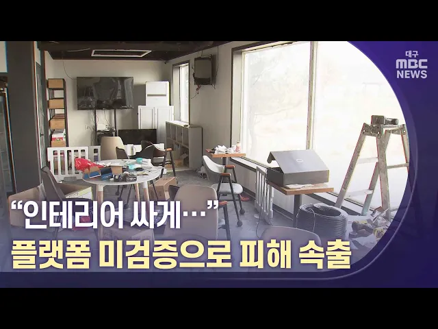 ◀앵커▶인터넷 플랫폼에 등록된 업체에 인테리어 공사를 맡겼다가 수천만 원을 날린 피해자가 속출하고 있습니다.돈만 받고 차일피일 공사를 해주지 않는 악덕 업자가 발을 붙일 수 있는 건 수수료를 받아 가면서도 업체를 검증하지 않는 플랫폼의 허점 탓도 있습니다.배현정 기자가 보도합니다.◀기자▶울진의 한 카페.가게 ...