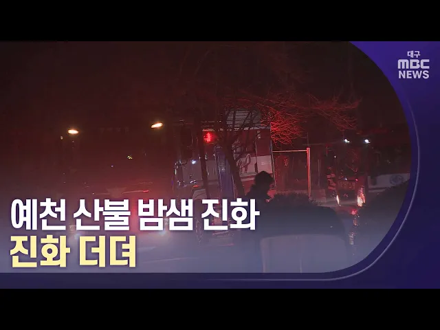 ◀앵커▶ 2월 28일 오후 시작된 경북 예천 산불은 날을 넘겨 지금까지 이어지고 있습니다.큰 불길은 잡았지만 밤사이 강풍이 분 탓에 꺼졌던 불씨가 살아나고 있다는데요산림당국은 날이 밝는대로 소방헬기를 투입해 최대한 빠르게 진화에 나선다는 계획입니다.김서현 기자가 보도합니다. ◀기자▶마을에는 매캐한 연기가 가득 ...