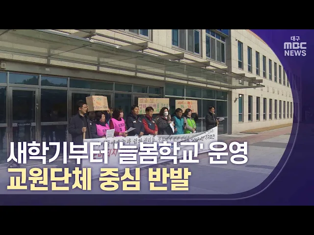 ◀앵커▶3월 2일부터 새학기가 시작되면서 경북지역 초등학교 40여 곳에서는 아침부터 저녁까지 돌봄을 제공하는 '늘봄학교'가 시범 운영됩니다. 2025년부터는 전체 학교로 확대될 예정입니다.하지만 교원단체를 중심으로 반발이 커지고 있습니다.'학생들을 위한 제도가 아니다', '준비되지 않은 졸속 추진'이라는 겁니다.박...
