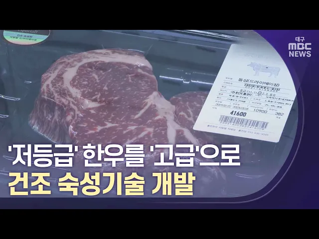 ◀앵커▶한우는 1등급 이상, 또 구이용 소비가 대부분을 차지해 등급이 낮은 암소나 구이용이 아닌 부위는 싼값에 판매되고 있습니다.그런데 저등급 고기를 1등급처럼, 또 국거리용 부위도 구이용으로 먹을 수 있게 만드는 '건조 숙성기술'이 개발돼 한우 농가에 큰 도움이 될 것으로 보입니다김건엽 기자가 보도합니다.◀기자...