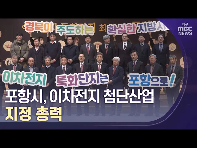 ◀앵커▶국가 첨단산업 특화단지로 지정되면 RD 예산 우선 배정, 세액 공제 등의 파격적인 혜택이 주어집니다.포항시와 경북도는 차별화 전략을 내세워 이차전지 특화단지 유치에 총력전을 펴고 있습니다.이규설 기자가 취재했습니다.◀기자▶포항에서 열린 '이차전지 혁신 산업생태계 구축 및 인재 양성 업무협약식'!행사에서...
