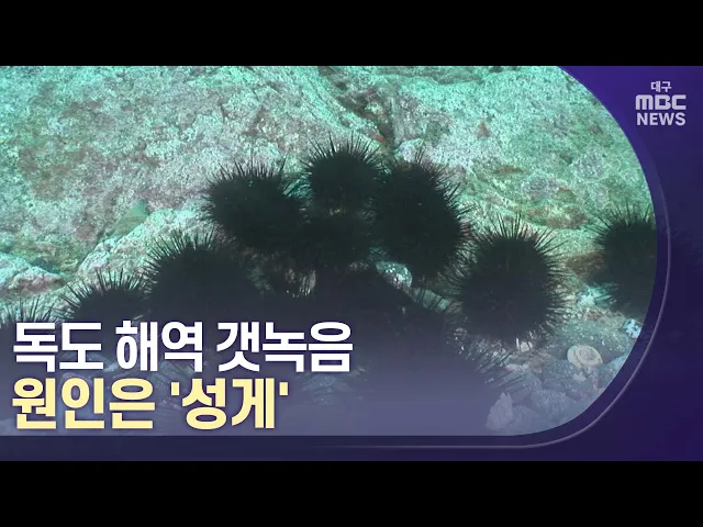 ◀앵커▶독도 해역에서 해조류가 사라지는 갯녹음 현상이 성게 때문이라는 연구 결과가 발표됐습니다.성게는 그동안 갯녹음의 주범으로 지목돼 왔는데, 연구 논문을 통해 규명된 건 이번이 처음입니다.장성훈 기자가 보도합니다. ◀기자▶갯녹음 현상이 심해, 해조류를 찾아보기 힘든 독도 바다, 하지만 군데군데 감태 같은 해...