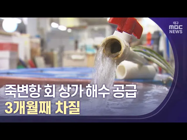 ◀앵커▶울진 죽변항 회 식당 상가 단지에 수족관용 해수 공급이 3개월째 차질을 빚고 있습니다.바닷물 취수 장치가 고장 났는데, 응급 복구에만 앞으로 두 달 정도 더 걸릴 예정이어서, 대게 철을 맞은 상인들은 영업에 비상이 걸렸습니다.김형일 기자가 보도합니다. ◀기자▶80여 개 회 식당이 몰려 있는 울진군 죽변항입니다...