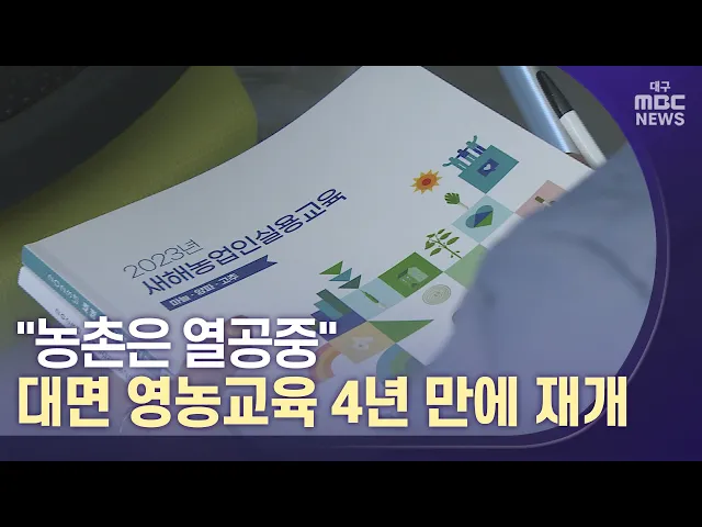 ◀앵커▶요즘 농촌에서는 새로운 기술과 정보를 배우는 새해 영농교육이 한창 진행되고 있습니다.코로나 사태 이후 4년 만에 처음으로 대면 교육으로 진행되는데요, 기상 재해 같은 새로운 교육과정도 신설돼 농민들의 관심이 높습니다.김건엽 기자입니다. ◀기자▶면사무소 회의실이 영농교육을 받으러 온 농민들로 가득 찼습...