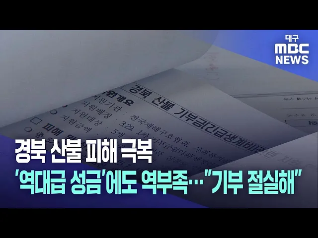 ◀앵커▶이번 경북 산불로 인한 피해 극복을 돕기 위해 역대 최대 규모의 기부금이 모였다는데요.하지만 역대 최악의 산불로 기록될 정도로 피해 규모도 심각하다 보니 성금 자체가 넉넉지 않은 상황입니다.산불 구호 성금, 얼마나 모였고 실제 지급되기까지 어떤 절차가 남았는지 김서현 기자가 알아봤습니다.◀기자▶이번 경...