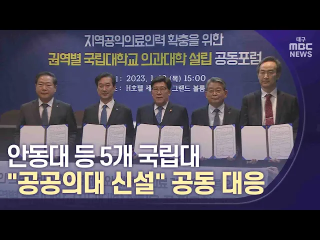◀앵커▶우리나라 의사 수는 세계 평균을 놓고 봐도 아주 적은 수준입니다. 더 큰 문제는 이 부족한 수준의 의료진 조차도 수도권에 몰려 있다는 겁니다.비수도권의 의료 공백을 해결해야 한다는 요구가 거센 가운데 5개 지역 국립 대학교가 의대 설립을 위해 공동 대응하기로 했습니다.이도은 기자가 보도합니다. ◀기자▶국립...