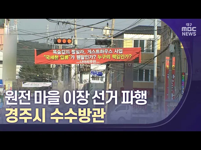 ◀앵커▶백억 원 가까운 원전 지원금을 집행한 경주 월성원전 인근 마을에서 이장 선거를 둘러싼 갈등이 커지고 있습니다. 선거를 일주일 앞두고 마을 자체 선관위가 현 이장을 제외한 나머지 후보자 3명을 일방적으로 사퇴시키면서 또다시 파문이 일고 있습니다. 이렇게 상황이 악화하고 있지만, 경주시는 소극적인 태도로 ...