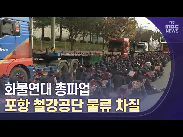 ◀앵커▶화물연대가 무기한 총파업에 들어갔습니다.안전운임제 지속 추진과 적용 품목 확대 여부를 놓고 화물연대와 정부가 입장 차를 좁히지 못하고 있습니다.파업이 장기화할 수 있다는 전망이 나옵니다.박성아 기자가 보도합니다.◀기자▶포항 철강공단내 도로에 대형 화물차들이 늘어섰습니다.이번 총파업에 참여하는 화물...