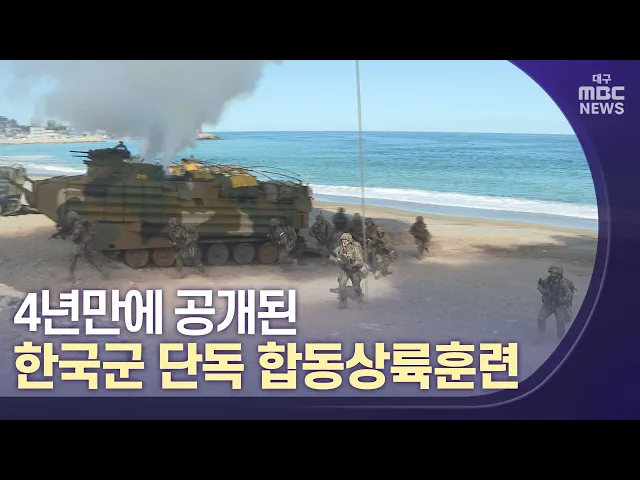 ◀앵커▶한국군 단독의 대규모 합동 상륙훈련이 10월 26일 포항 일대에서 실시됐습니다.훈련 모습이 4년만에 언론에 공개됐는데요, 북한의 잇따른 탄도미사일 도발에 대한 우리 군의 대응 조치라고 합니다.배현정 기자가 취재했습니다.◀기자▶연막탄 터지는 소리 장갑차 4척이 수평선 너머로 물살을 가르며 해변을 향해 돌진합...