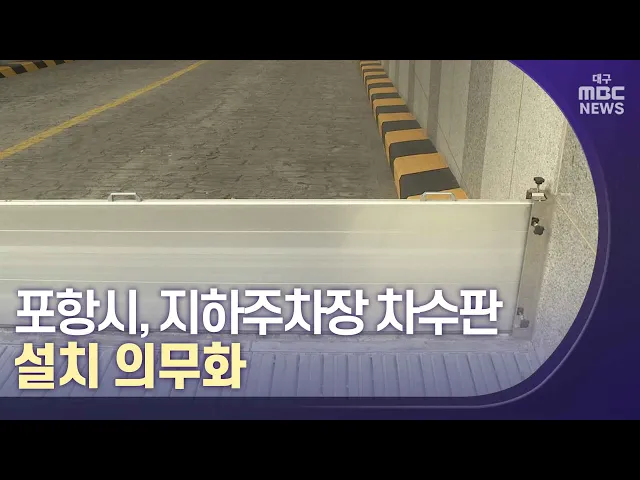 ◀앵커▶이렇게 집중호우로 인한 침수 피해를 막기 위해 제 기능을 하는 빗물펌프장도 필요합니다만, 새는 물을 막는 판, '차수판'의 역할도 중요합니다.태풍 힌남노 당시, 이 차수판이 침수 위기를 막는 일등공신이었는데요,포항시는 건축물을 신축할 경우에 '차수판' 설치를 의무화한 데 이어 기존 건물에 대해 차수판 설치...