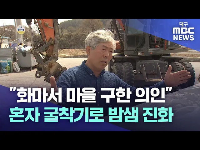 ◀앵커▶지난 3월 경북 영덕 산불 당시 화마로부터 마을을 구한 한 주민의 이야기가 전해져 미담이 되고 있습니다.모든 주민들이 대피한 위험천만한 상황에서 혼자 굴착기를 타고 밤새 화마에 맞서 불을 껐는데요,다행히 이 마을은 인근에서 피해가 가장 적었습니다.장성훈 기자가 보도합니다.◀기자▶3월 25일 산불이 휩쓸고 ...
