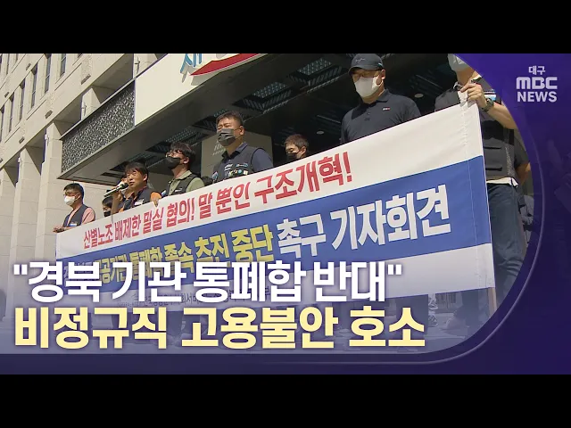 ◀앵커▶경상북도가 공공기관 통폐합 계획을 2022년 7월 발표했죠,하지만, 비정규직에 대한 고용 승계 방안을 명확히 밝히지 않아 해당 기관에 근무하는 비정규직 직원의 불안감이 커지고 있습니다. 경상북도는 비정규직의 경우 구조조정으로 인한 해고는 없지만, 계약 만료는 가능하다는 입장입니다.이도은 기자입니다. ◀기...