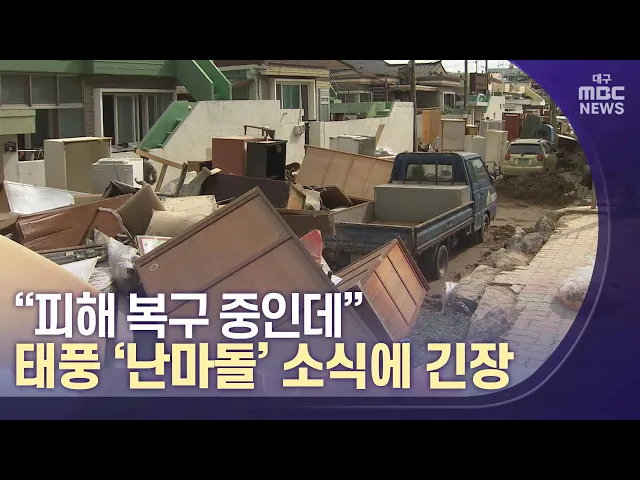 ◀앵커▶제14호 태풍 난마돌이 한반도에 영향을 줄 것으로 관측되고 있습니다. 다음주 월요일인 19일 새벽, 동해안을 중심으로 강한 비바람이 몰아칠 것으로 보입니다.태풍 '힌남노'로 큰 피해를 겪은 포항과 경주에서는 긴장감이 높아지는 가운데 복구 작업에 속도를 내고 있습니다.박성아 기자입니다. ◀기자▶태풍 힌남노로 ...