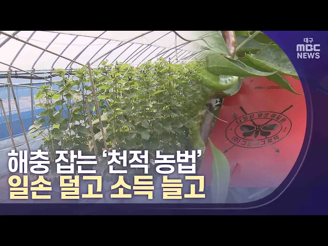 ◀앵커▶농약 대신 천적을 활용하는 농법이 주목받고 있습니다.농약으로부터 농민과 소비자를 지키면서 일손은 덜고 소득은 늘어나는 효과도 볼 수 있습니다.김건엽 기자가 보도합니다.◀기자▶무농약으로 멜론을 재배하는 농장입니다.멜론에 치명적인 '가루이'를 막기 위해 천적인 '장님 노린재'를 풀고 있습니다.농약 사고를 ...